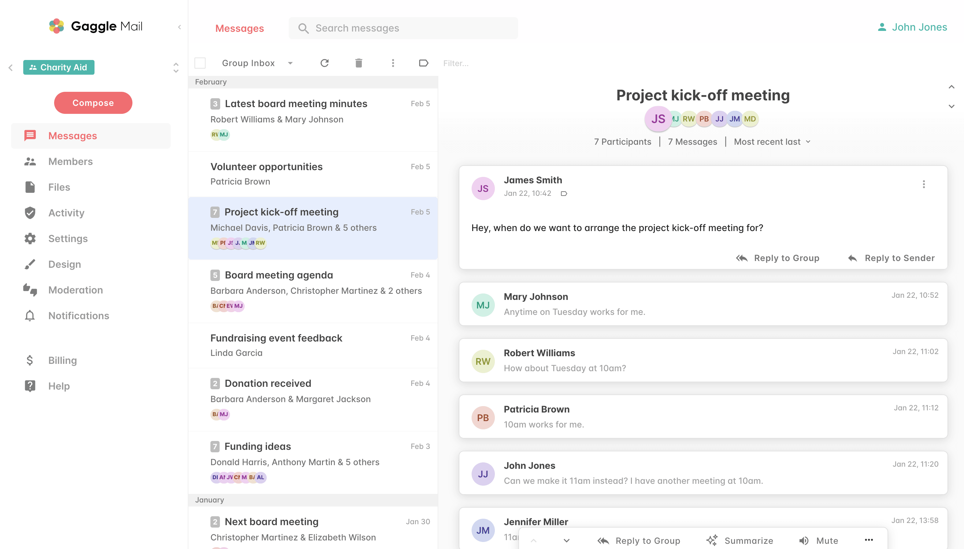 “Gaggle Mail transformed how our neighborhood association communicates. It's so intuitive that even our less tech-savvy members participate actively. The moderation tools are exactly what we needed.“
